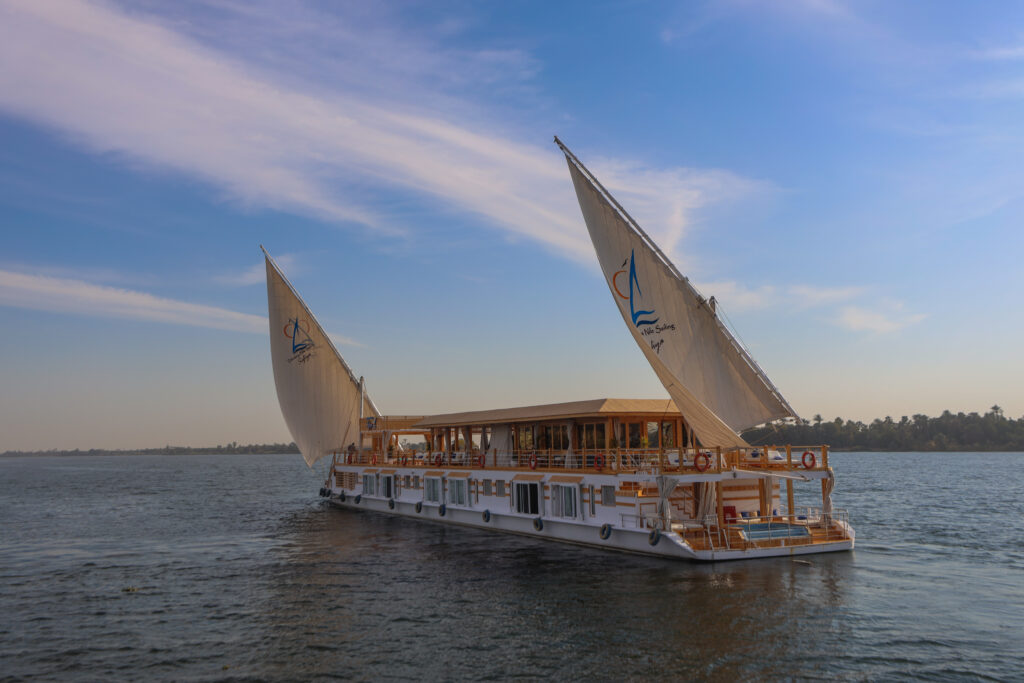 Dahabiya Nile Sailing banner that shows the multiple activities that can be done